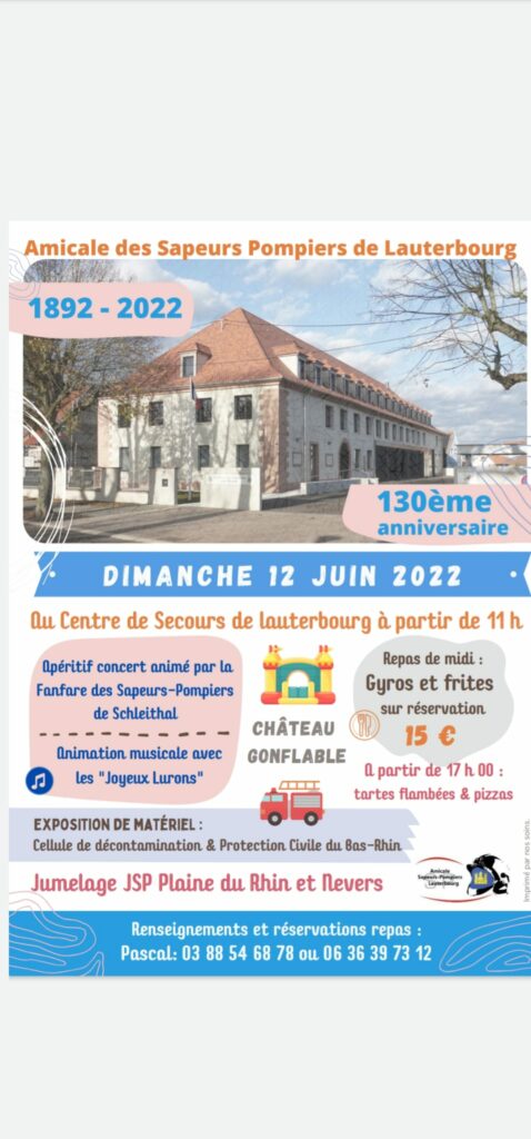Le centre de secours de Lauterbourg et l’amicale des sapeurs-pompiers organisent leur 130ème anniversaire afin